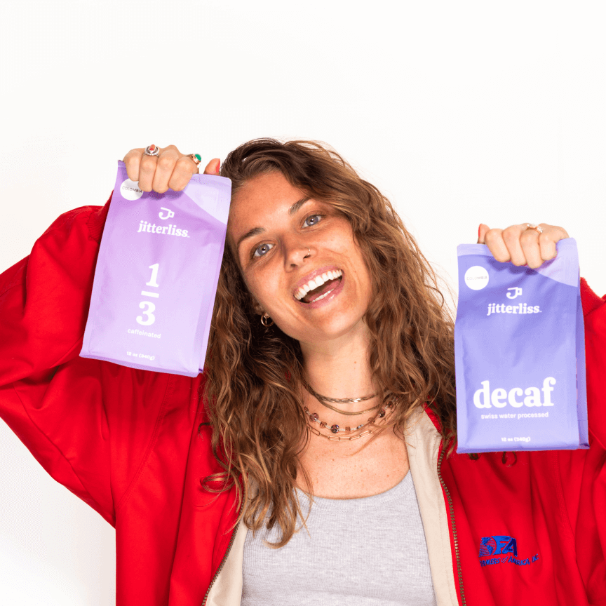Virtually none. We have a 99.9%caffeine removed guarantee. You'll find more caffeine in a piece of dark chocolate. What's great is that you can still experience increased alertness according to some studies.
